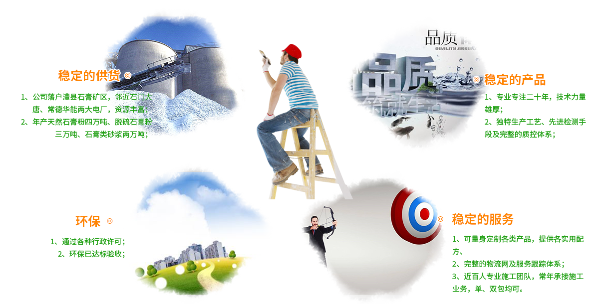 常德宏冠石膏環保材料科技有限公司,是一家集研發、生產銷售、推廣應用及施工指導為一體的大型石膏類產品生產企業。下轄“石膏粉料”和“石膏砂漿”二個生產基地,年產量10萬噸以上。“膏科泰”和“宏冠美宅”是深受消費者喜愛的公司產品系列。